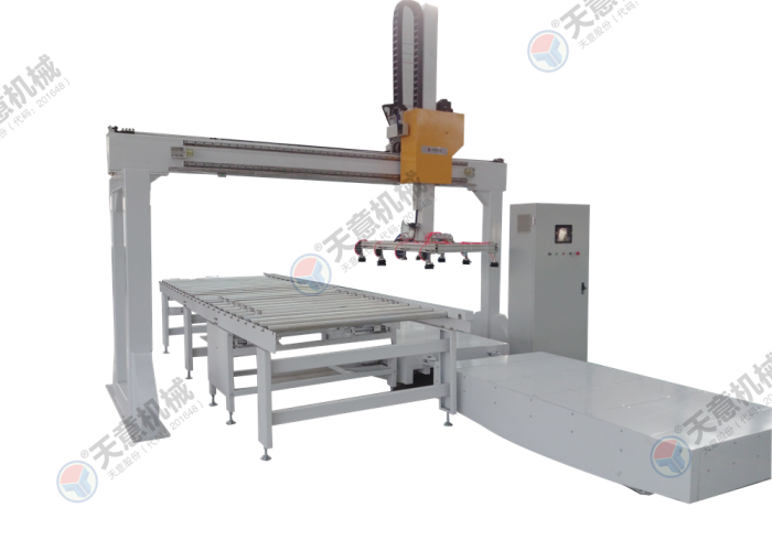 1.本機器適用于硅酸鈣板、水泥纖維板、玻鎂板、裝飾板等板式工件,配套連線作業時進行自動上料或下料。