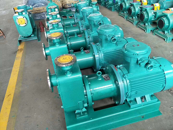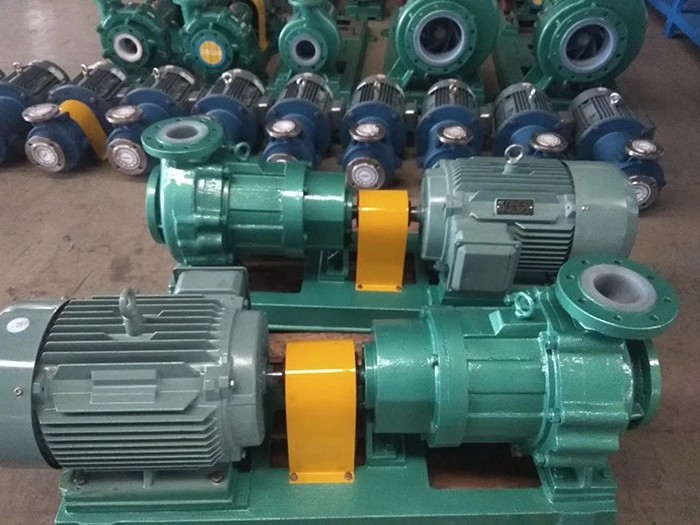 高溫磁力驅動離心泵(簡稱高溫磁力泵)通常由電機,磁力偶合器,水冷卻裝置和耐腐蝕離心泵四大部分組成,其主要特點是利用磁力偶合器傳遞動力。當電動機帶動磁力偶合器的外磁鋼旋轉時,磁力線穿過間隙和隔離套,作用于內磁鋼上,使泵轉子與電動機同步旋轉,無機械接觸地傳遞扭矩。在泵的動力輸入端,由于液體被封閉在靜止的隔離套內,沒有動密封因而無泄漏。磁力偶合器的磁性材料采用耐高溫型稀土永磁材料,能承受280度以下的高溫介質而保持強大的磁力扭矩。在電機與磁力偶合器之間加裝了水冷卻裝置,防止泵送高溫介質之熱量傳導至電機,以保持電機的正常運行,從而達到無泄漏輸送高溫介質。
