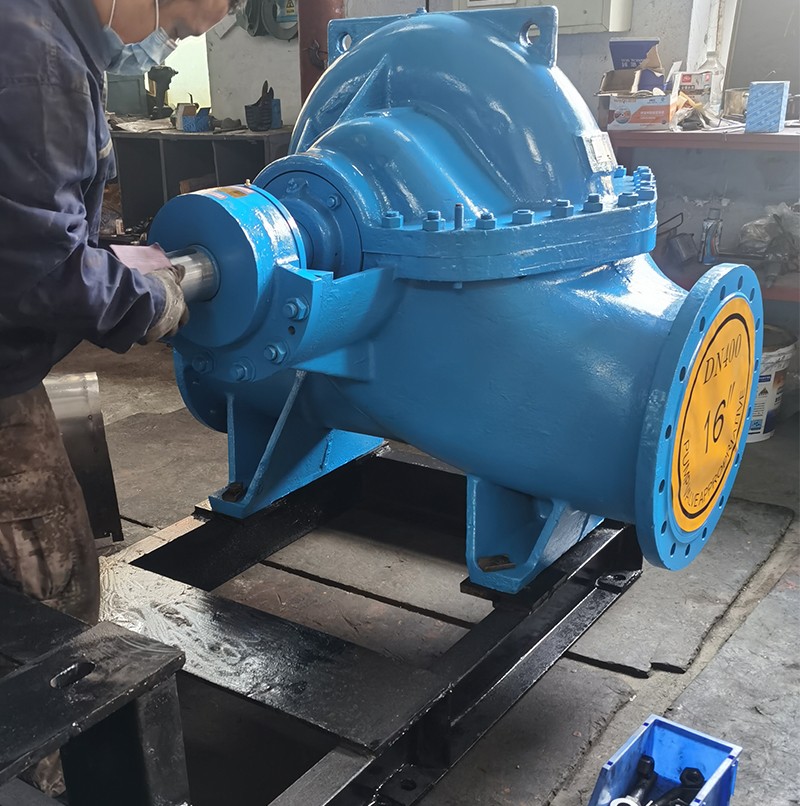 結(jié)構(gòu)設(shè)計(jì):單 級雙吸軸向中開蝸殼離心泵,臥式安裝.驅(qū)動機(jī)(電動機(jī)或內(nèi)燃機(jī))可根據(jù)需要設(shè)置在泵的左側(cè)或右側(cè)(即面向出口,驅(qū)動機(jī)在左側(cè)為逆時(shí)針旋轉(zhuǎn).在右側(cè)為順時(shí)針旋轉(zhuǎn))。